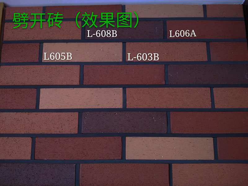 劈開磚紋理獨(dú)特,質(zhì)感細(xì)膩。60*240*12mm(磚紅色、黃色、深棕色、鮮紅色)