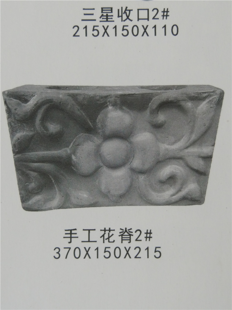 仿古青瓦是粘土燒制的,呈青灰色;粘土是某些鋁硅酸礦物長時間風(fēng)化的產(chǎn)物,具有極強(qiáng)的粘性而得名。仿古青瓦主要構(gòu)件及配件:勾頭、滴水、筒瓦、板瓦、脊瓦、擋勾、博古、正吻、三連磚、瓦條、圓混、雙龍戲珠、寶頂、花盤子、跑獸、角尖、花邊、瓦臉、等。